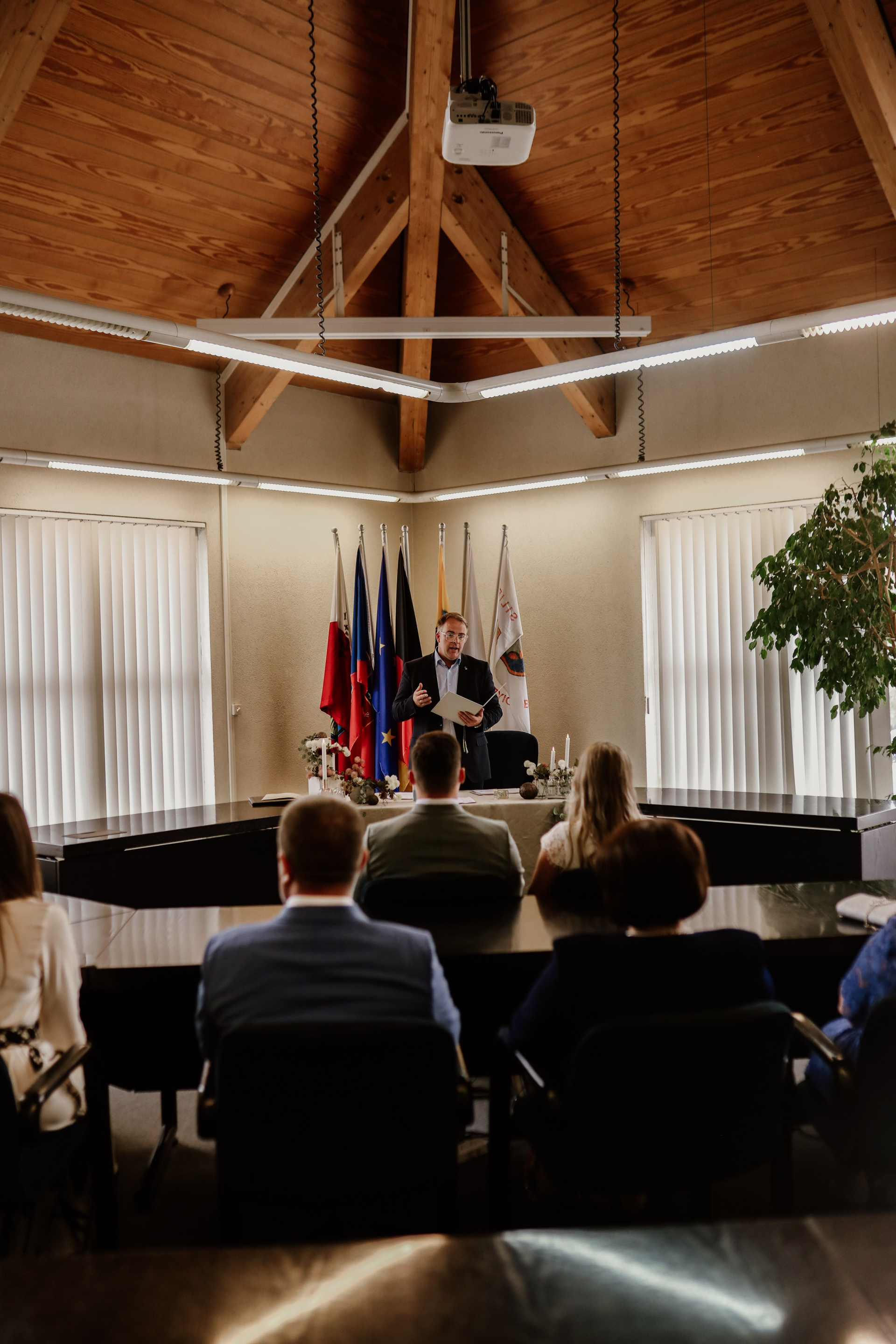 Die standesamtliche Zeremonie in Haßloch ist keine große Show – und genau darin liegt ihre Schönheit. Ihr sitzt zusammen mit den Menschen, die euch wichtig sind, in einem hellen, liebevoll gestalteten Raum, und es bleibt genug Zeit für persönliche Worte, kleine Lacher und manchmal auch ein paar Tränen.
